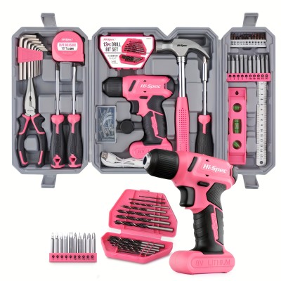 [ピンクスクルードライバー] 58in1充電可能な電気スクルードライバーセット | 8V家庭用電気ドリル、ピンク多機能ツールボックス、電気ツール | 母親、ガールフレンド、ギフトを送る